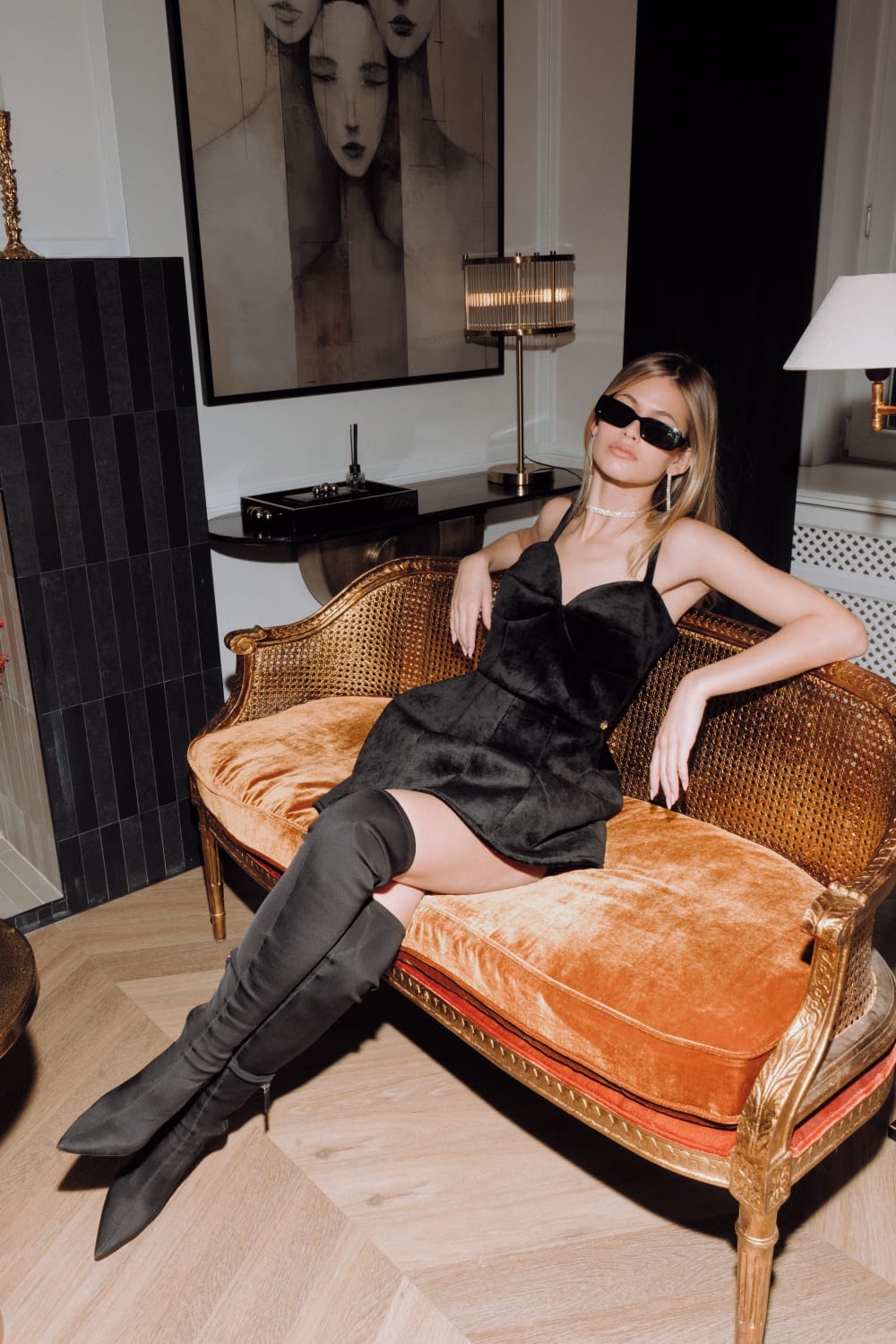Crni velvet koji oblikuje tijelo poput skulpture.